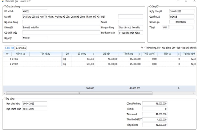 - Bước 3: Chọn phiếu báo giá cần sửa và tiến hành sửa các thông tin mình muốn.