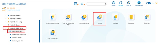 Đường dẫn: Quản lý khách hàng/ Cập nhập số liệu/ Báo giá