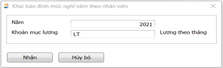 Đường dẫn: Tiền lương \Cập nhật chấm công, cơm\ Định mức nghỉ năm theo nhân viên