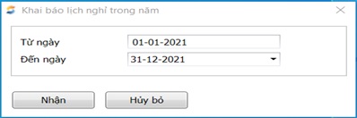 Đường dẫn: Tiền lương \Cập nhật chấm công, cơm\ Lịch nghỉ trong năm