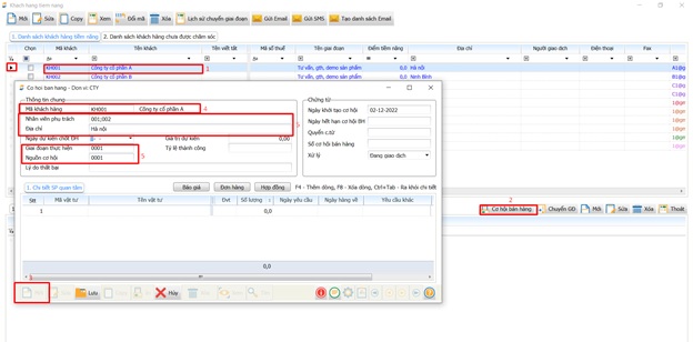 - Bước 1: Chọn khách hàng tiềm năng cần tạo cơ hội bán hàng