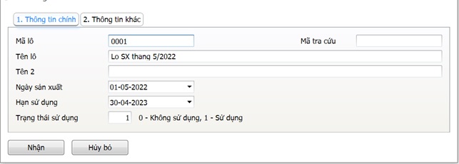 Mã lô : Mã tự đặt theo nguyên tắc đặt mã