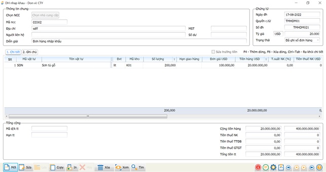 Đơn hàng nhập khẩu có chức năng nhập thông tin đơn hàng cần nhập khẩu tương tư như hóa đơn bán hàng vào trong hệ thống phần mềm để nhà quản lý dễ dàng kiểm soát hóa đơn.