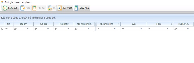 - Chức năng: Căn cứ vào số lượng thành phẩm nhập kho, các loại chi phí được tập hợp và phân bổ, chương trình cho phép tính giá thành sản phẩm tự động