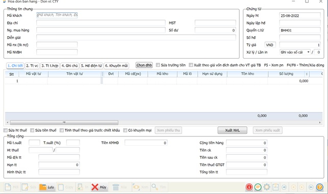 Chức năng: Lập chứng từ bán vật tư, hàng hóa có theo dõi về số lượng, giá cả, thuế GTGT đầu ra HĐBH cập nhật doanh số bán hàng, ghi nhận giá vốn, giảm trừ hàng tồn kho của hàng xuất khẩu.