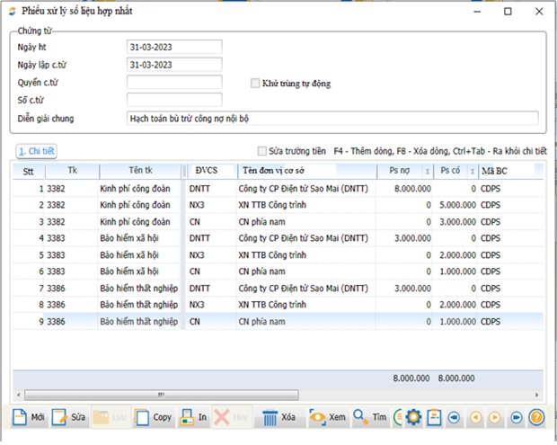 TH1: Xử lý tài khoản phải thu, phải trả, vay nội bộ