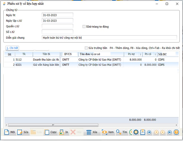 TH2: Xử lý số liệu chi hộ, nộp hộ công ty con – số liệu xử lý bút toán này người dùng tự nhập, không sử dụng khử trùng tự động