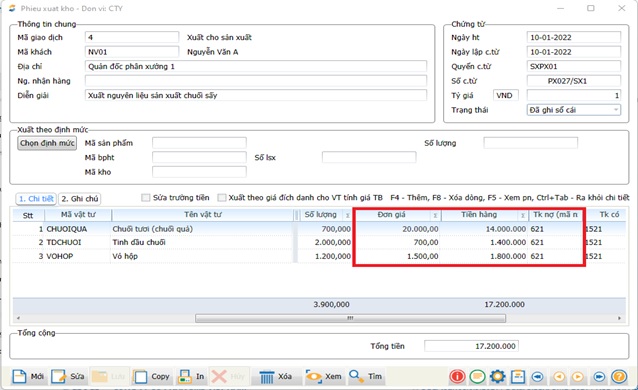 - Nếu lúc khai báo danh mục vật tư mà quên chưa nhập “TK chi phí nguyên vật liệu”- 621 thì khi tạo phiếu xuất kho người dùng phải nhập tài khoản này vào mục Tk nợ (mã nx)