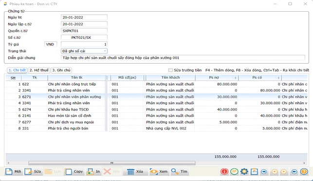 Bước 2: Tập hợp và phân bổ chi phí 621, 622, 627…kết chuyển sang tk 154