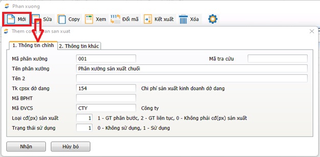 - Khai báo danh mục phân xưởng