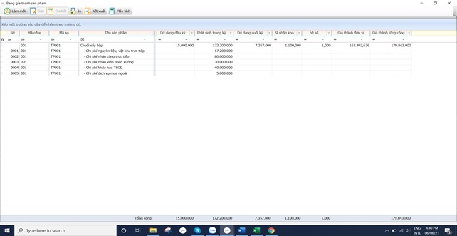 Bước 3: Tính giá thành sản phẩm