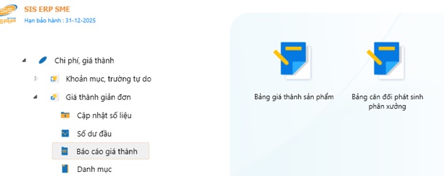 Bước 4: Các báo cáo giá thành liên quan