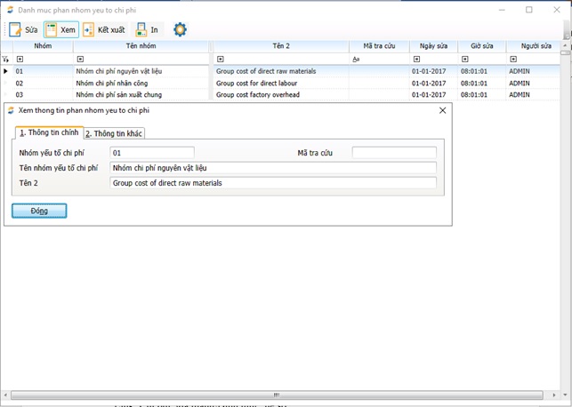 - Đường dẫn: Chi phí, giá thành\Giá thành giản đơn\Danh mục\Phân xưởng