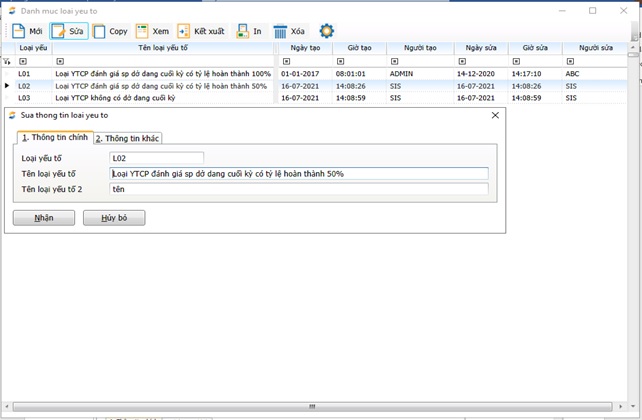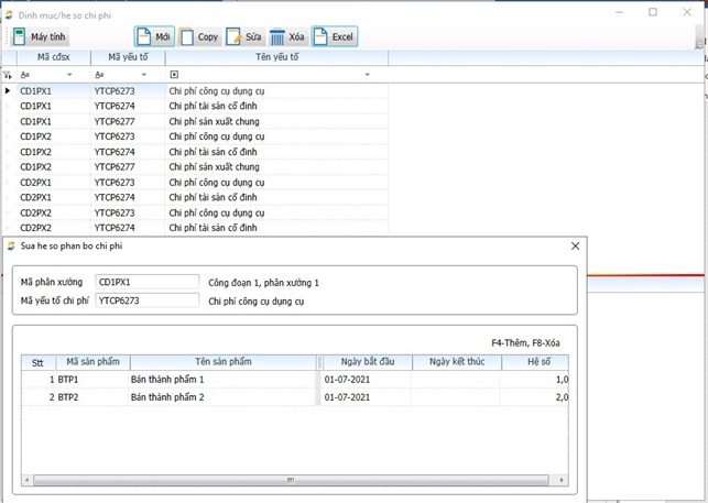 Đường dẫn: Chi phí, Giá thành/Giá thành công đoạn, định mức/Tính chi phí giá thành/ Phân bổ chi phí theo hệ số