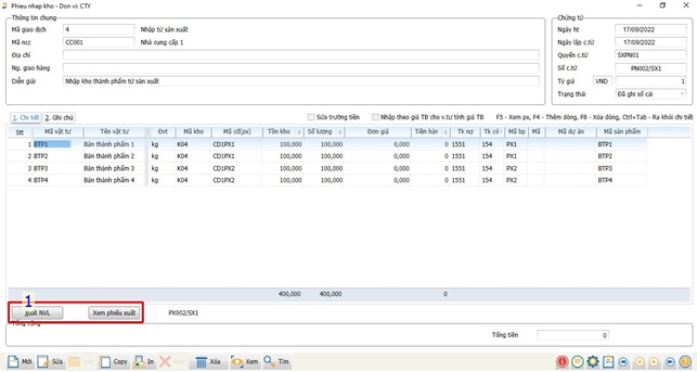 - Bước 6: Cập nhật phiếu nhập kho thành phẩm