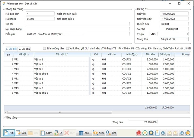 - Khi tạo phiếu xuất kho phải nhập Mã cđ (Px) thì mới tập hợp được chi phí nguyên vật liệu theo phân xưởng sản xuất, là cơ sở để kết chuyển chi phí tính giá thành sau này.