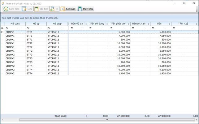 + Chương trình tập hợp và phân bổ chi phí theo từng kỳ của năm