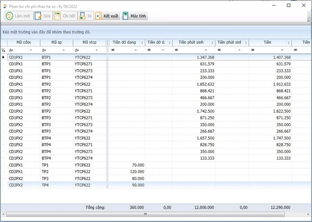2.6.5.13.3 Phân bổ chi phí theo hệ số