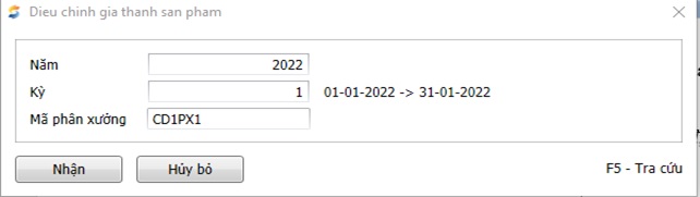 Đường dẫn : Chi phí, Giá thành/Giá thành công đoạn, định mức/Tính chi phí giá thành/Điều chỉnh giá thành sản phẩm