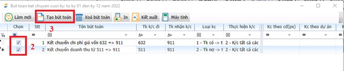 2. Tích chọn các bút toán cần thực hiện kết chuyển