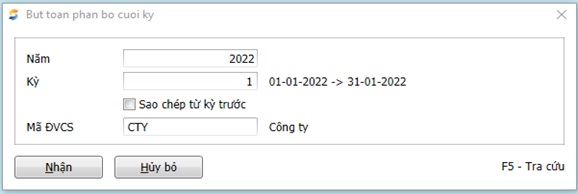 Đường dẫn: Kế toán tổng hợp\ Cập nhật số liệu\ Bút toán phân bổ cuối kỳ