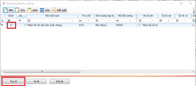 3. Sau đó tích chọn bút toán phân bổ đã khai báo