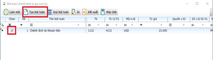 2.2.3.9 Bút toán chênh lệch tỷ giá cuối kỳ