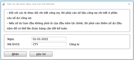 - - Ngày: Nếu sử dụng chương trình không phải bắt đầu từ đầu năm tài chính thì ngoài việc nhập số dư đầu kỳ còn phải nhập số dư đầu năm để có thể lên được bảng cân đối kế toán
