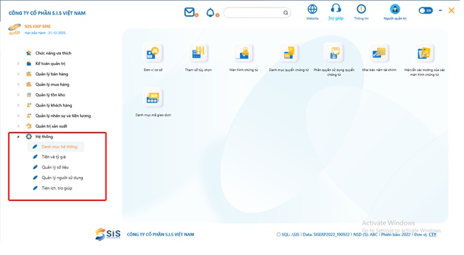 Phân hệ “Hệ thống” giúp người sử dụng khai báo các thông tin dùng cho toàn bộ phần mềm, quản lý việc truy cập phần mềm và bảo trì cơ sở dữ liệu kế toán. Khai báo trong phân hệ “Hệ thống” nhằm 2 mục đích: