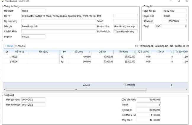 Phiếu báo giá trong quản lý bán hàng cực kỳ quan trọng. Nó cho phép người dùng lập thông tin báo giá về sản phẩm, dịch vụ và gửi cho khách hàng. Phiếu báo giá thể hiện đầy đủ thông tin về doanh nghiệp cung cấp, loại sản phẩm, số lượng, giá thành,… Việc tạo phiếu nhanh, kịp thời và chính xác còn giúp doanh nghiệp thể hiện sự chuyên nghiệp, chỉn chu trong mọi công đoạn, từ đó đối tác sẽ có cái nhìn ấn tượng hơn.