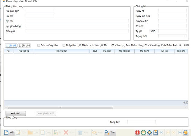 - Các chức năng: Thêm mới, sửa, copy, in, xóa, xem , tìm tương tự như các phần khác