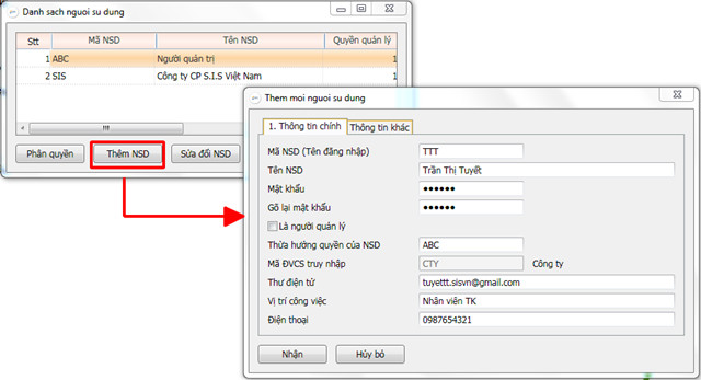 - Thêm người sử dụng (Là thêm mới người sử dụng).